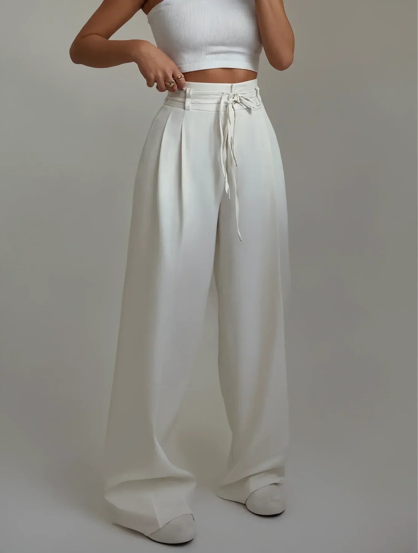 Kliv in i ren elegans med Madeleine, de ultimata byxorna för en stilren och sofistikerad look. Den höga midjan och smickrande passformen framhäver din figur på ett elegant sätt, medan den stiliga bältesdetaljen ger en extra touch av finess. Perfekta för allt från affärsmöten till eleganta utekvällar – Madeleine får dig att känna dig kraftfull, självsäker och alltid chic.